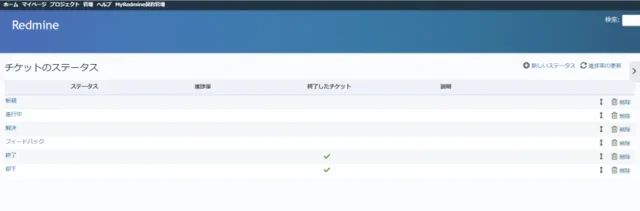 デフォルトステータスは、そのトラッカーのチケットが作成されたときに適用されるステータスです。