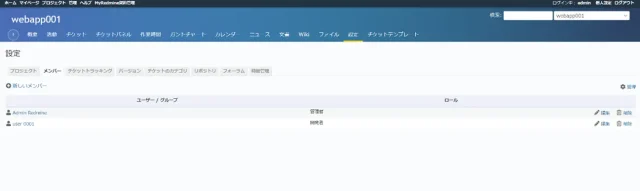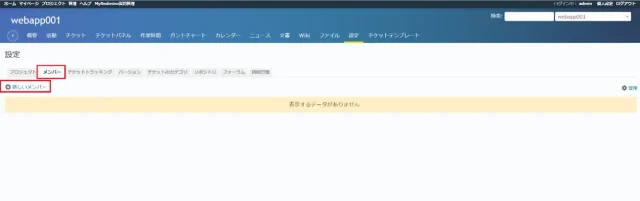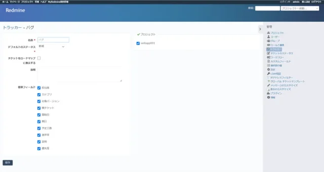 プロジェクトにユーザーとトラッカーを割り当てるため「プロジェクト」を選択してください。
