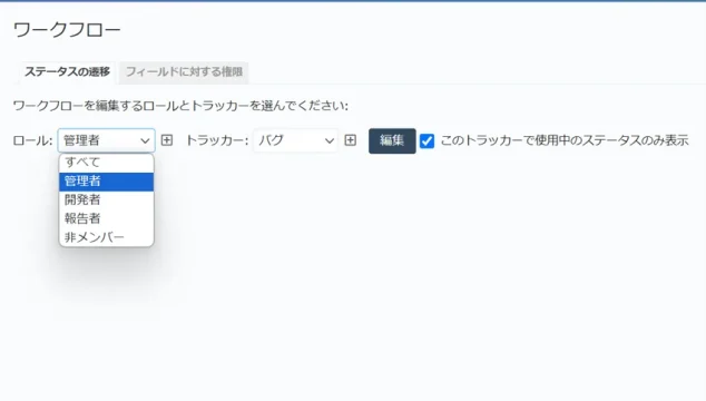 Redmineでは、タスクのステータス変更やフィールドへのアクセス権を詳細に設定できます。