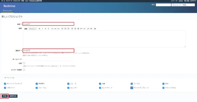 表示される画面上で、プロジェクトの名前や識別子、説明などを入力し、必要に応じて親プロジェクトや公開の設定を行いましょう。