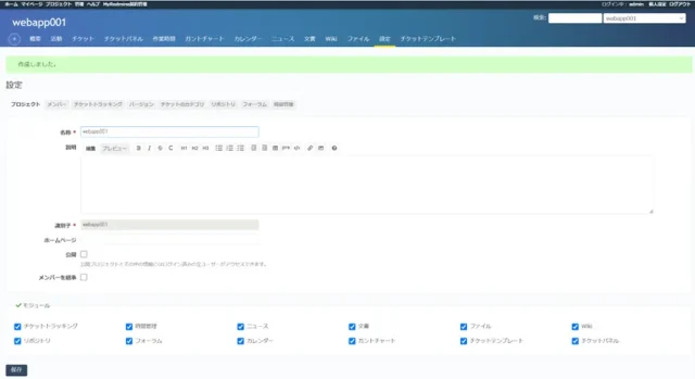 プロジェクトにはモジュールと呼ばれる機能があり、チケット管理やWiki、ファイルなどを有効にすることができます。