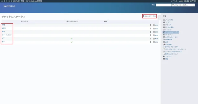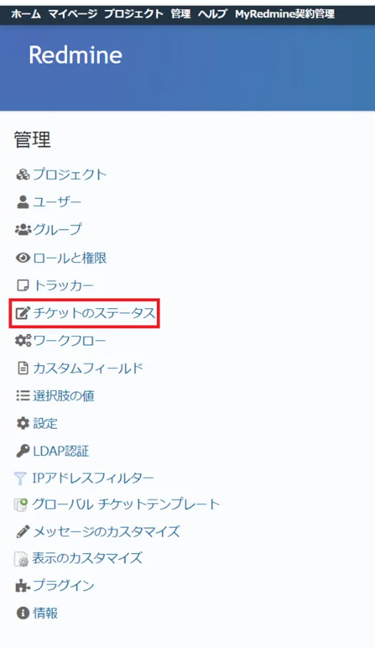 プロジェクトを作成した後は、チケットのステータスやトラッカー、ワークフローを初期状態からプロジェクトに合った内容に変更しましょう。