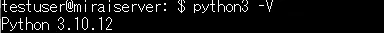 まず、Pythonがインストールがされていることを確認するため、以下のコマンドを実行します。