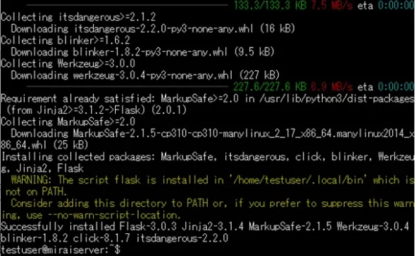 以下のコマンドを実行すると、Flaskのバージョン情報が表示されます。