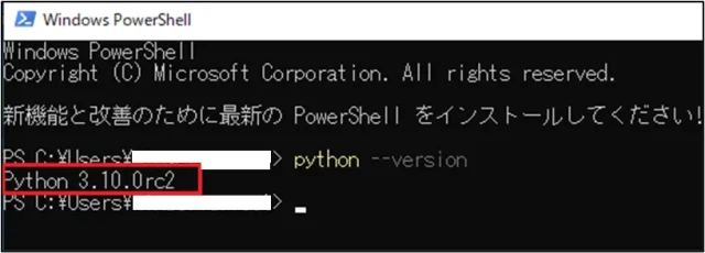 Pythonを起動し、必要なバージョン以上であることを確認します。