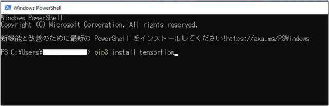 以下のコマンドを入力し、pipからTensorFlowをインストールします。