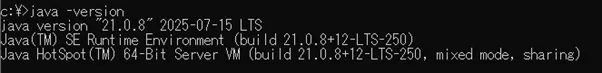 ②Javaのインストールが完了したら、バージョンを確認し、正常にインストールできていることを確認します。