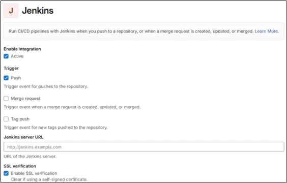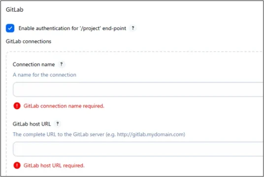 ③「Enable authentication for ‘/project’ end-point」にチェックを入れ、使用するGitLabの接続情報を入力します。