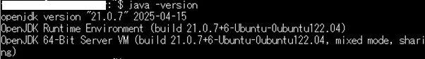 ①Ubuntu Linuxでも、Java(今回はOpenJDK 21)をインストールします。