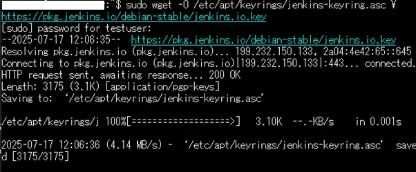 | sudo wget -O /etc/apt/keyrings/jenkins-keyring.asc \ https://pkg.jenkins.io/debian-stable/jenkins.io.key |