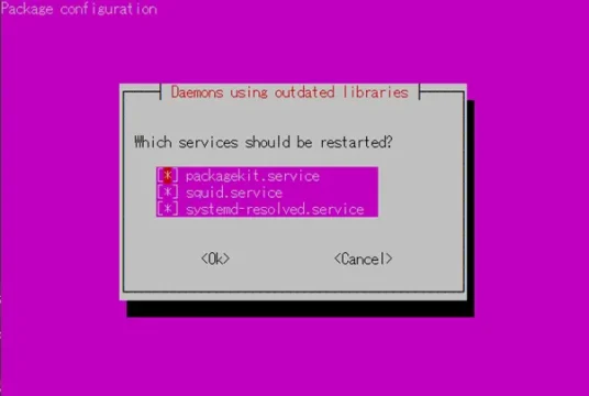 ④インストール時に、サービスの再起動を促すメッセージが表示された場合は「OK」を選択します。