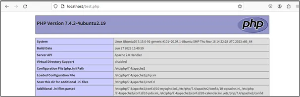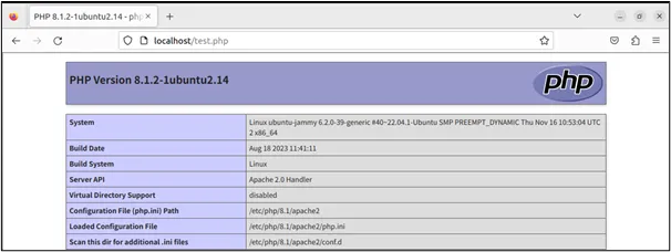 ApacheとPHPの連携がうまくできていれば、以下のPHPの情報が記載されたページが表示されます。