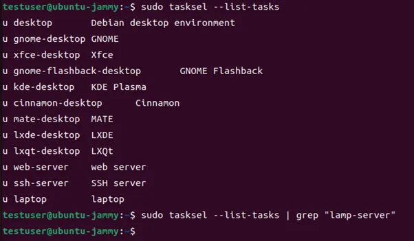 しかし、Ubuntu 22.04ではtaskselのタスクリストから、lamp-serverが除外されており、taskselを使用したインストールを実行することができません