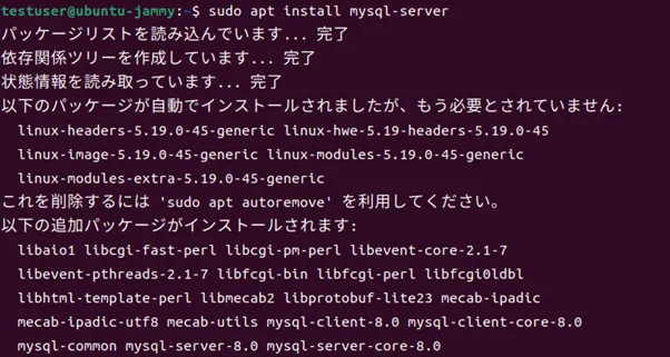 MySQLは、以下のコマンドでインストールします。