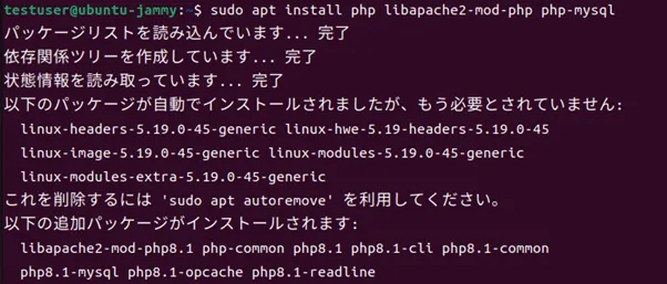 以下のコマンドで、PHPをインストールします。
