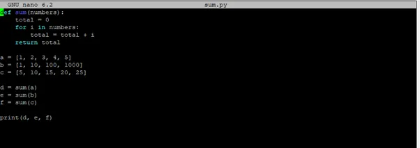 この例では、sum 関数を定義して複数のリストの要素を合計しています。