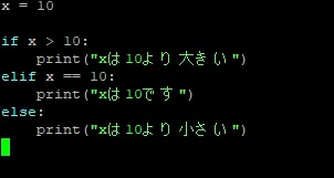 if文では、elif(else ifの略)とelseを使用して、複数の条件を設定することも可能です。