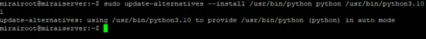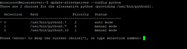 sudo update-alternatives –install /usr/bin/python python /usr/bin/python3.10 1