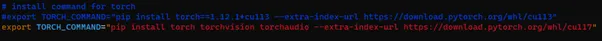| export TORCH_COMMAND=”pip install torch torchvision torchaudio –extra-index-url https://download.pytorch.org/whl/cu117” |