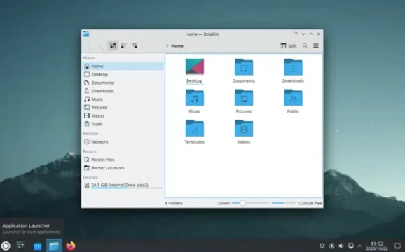 ファイルマネージャーはDolphinが採用されており、Windowsに近い外観で、ファイルの管理や検索が簡単に行えます。