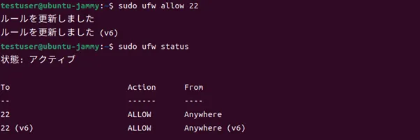 | ufwの設定の有効化 | $ sudo ufw enable |