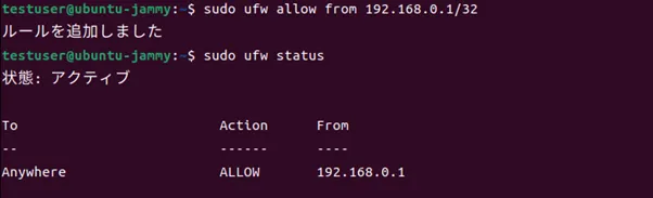 | ufwの再起動 | $ sudo systemctl restart ufw |