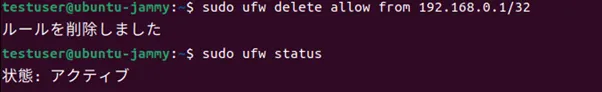 | ufwの設定の無効化 | $ sudo ufw disable |